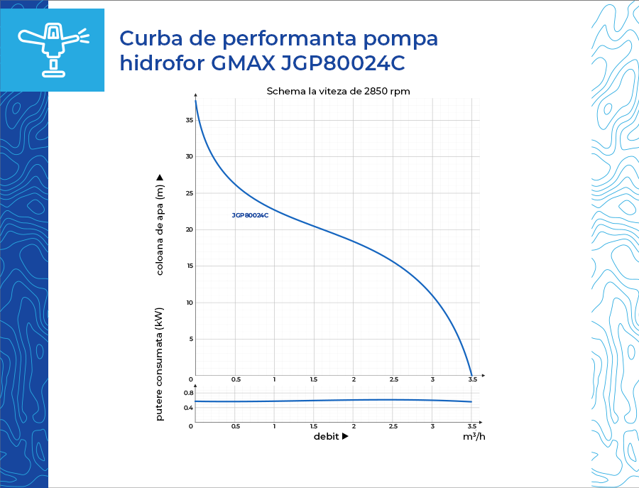 Hidrofor de mare putere Gmax JGP JGP80024C, putere 800 w, debit 3.3 m3/h, aspirare 8 m, refulare 38m