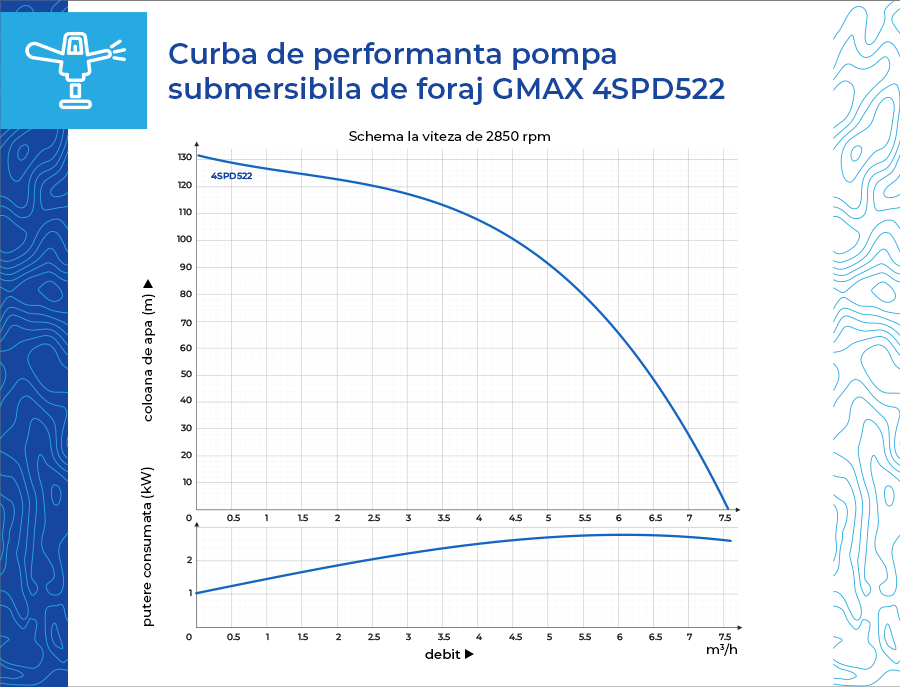 Pompa de foraj Gmax 4SPD522-2.2 este un tip de pompa submersibila. Dimensiunea dispozitivului este de ø 100 mm.
